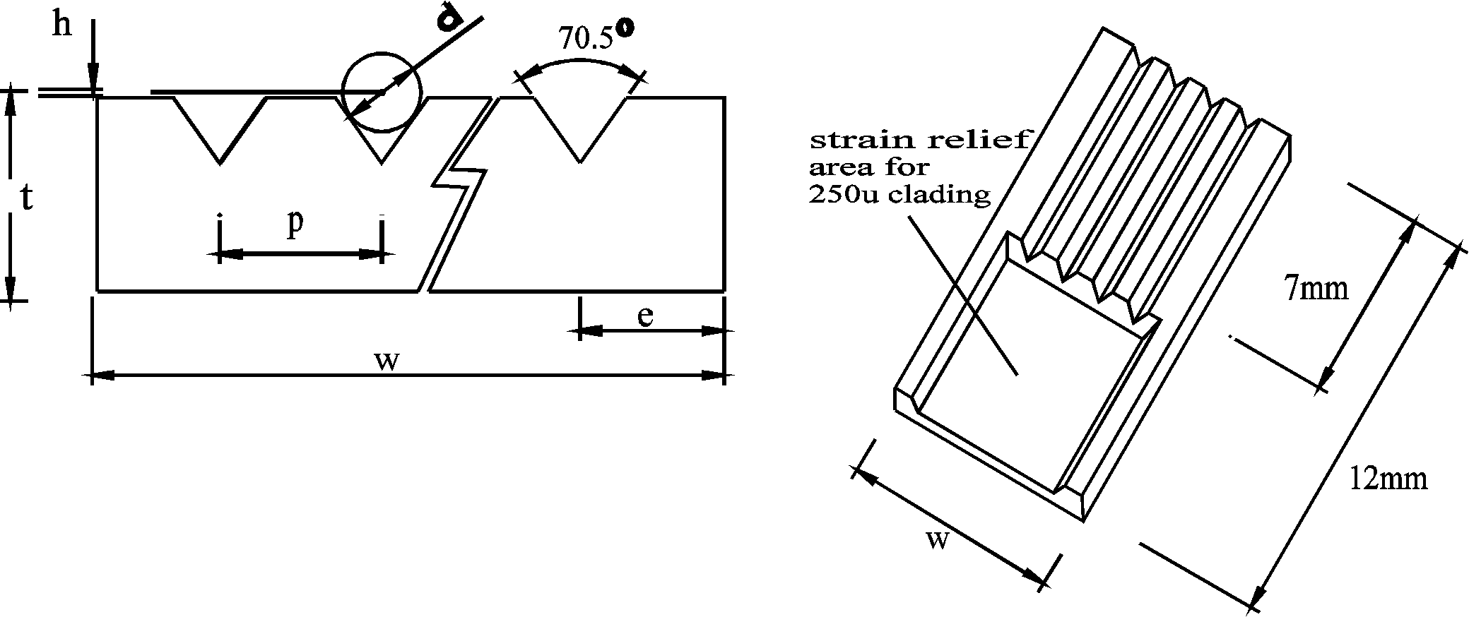 Our standard silicon V-grooves chips 12 mm in length